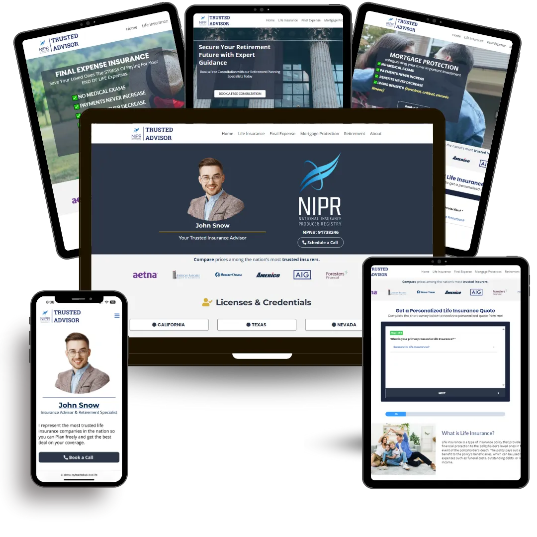 Your ultimate platform for life insurance agents to enhance their business – A one-stop shop for all your marketing needs. Personalized My trusted Advisor website Included!
