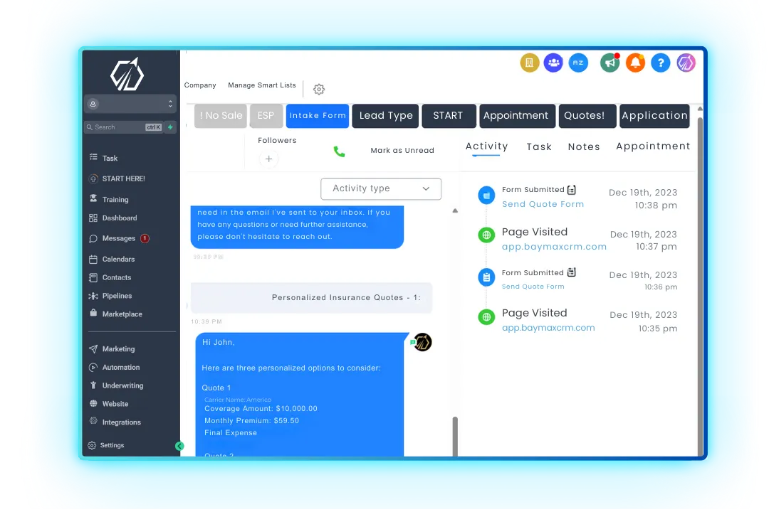 These one-click automations are designed to eliminate unnecessary manual tasks, allowing you to focus on building client relationships and growing your business. By streamlining your workflow, Baymax CRM ensures that you can navigate the challenges of telesales more efficiently, ultimately contributing to your success as a life insurance agent.